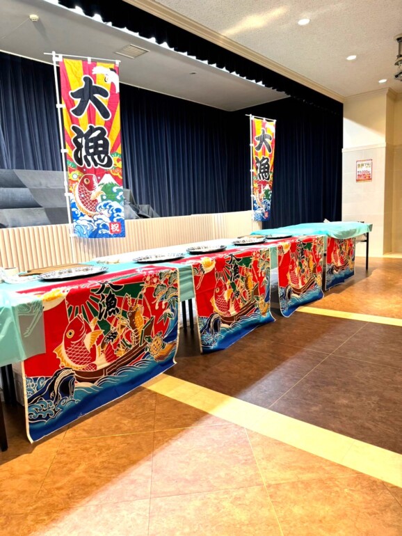 大漁旗が飾られ賑やかな雰囲気です✨