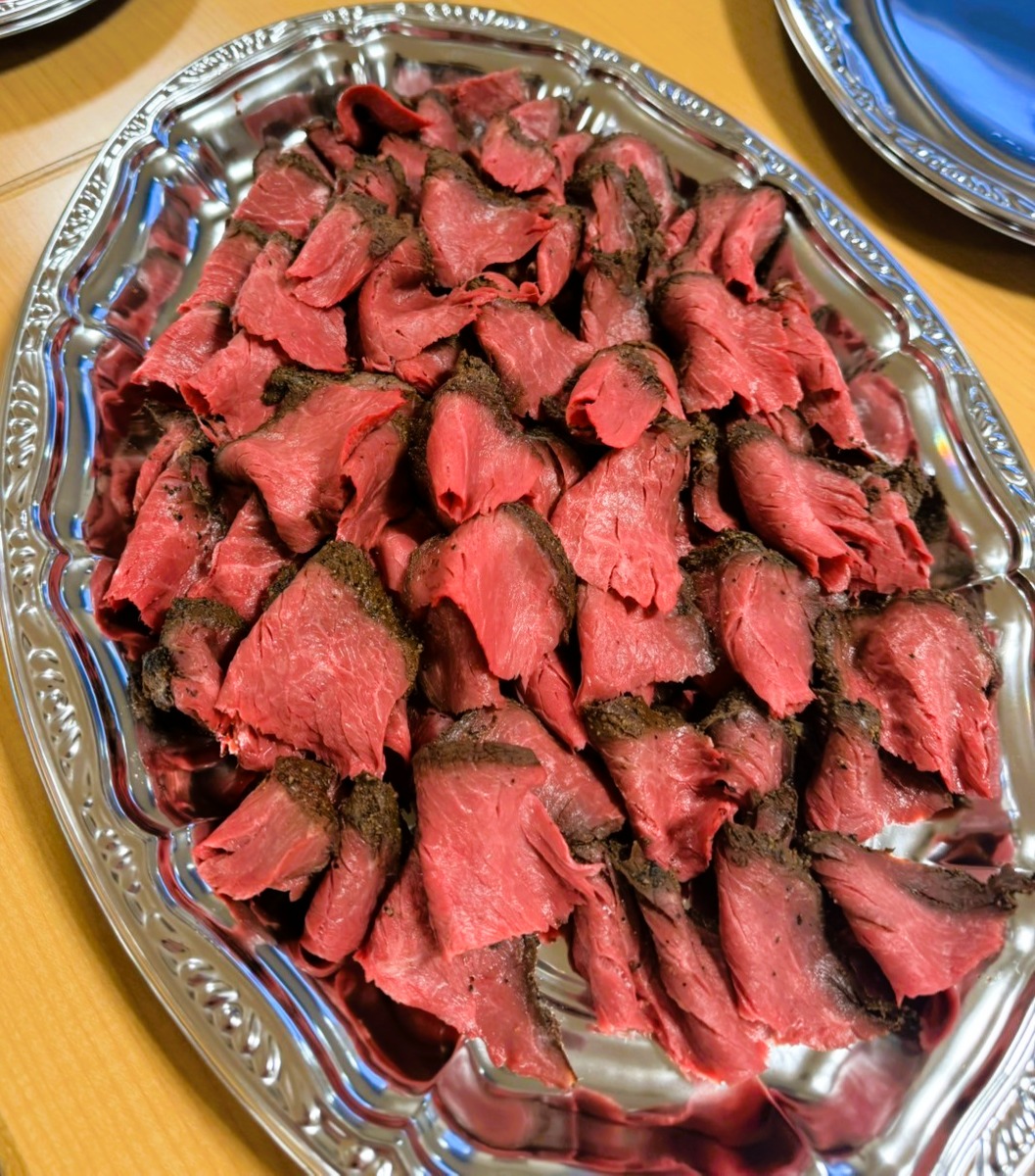 美しくスライスされたローストビーフは、カットされた瞬間のものです!