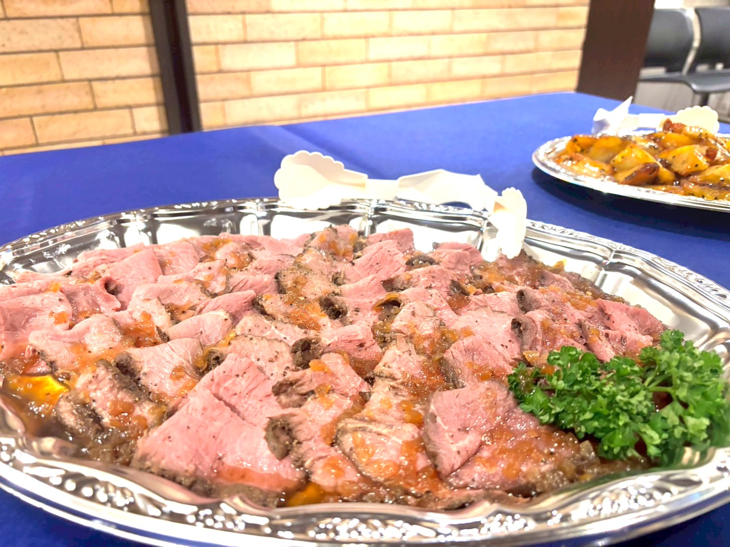 添えられたパセリの緑が赤身肉の美しさをさらに引き立て、ゲストの皆様が次々とお皿に取ってくださる、人気No.1メニューとなりました。