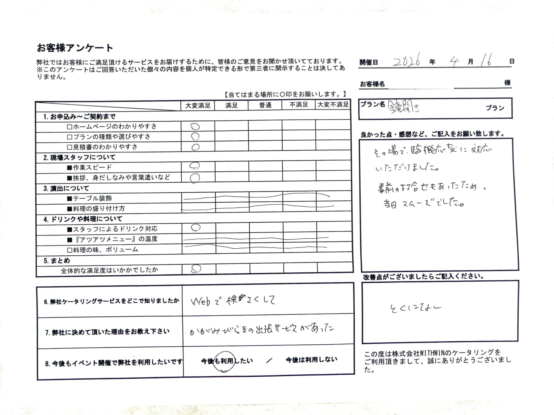 実施後のアンケートでは、「スタッフの対応」「演出の質」「プランニングの正確さ」など、