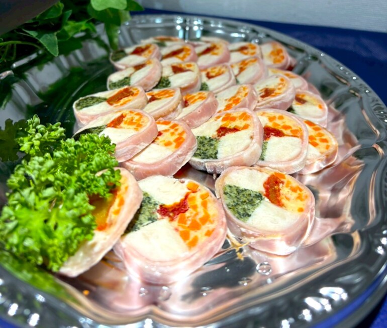 彩りの良い「トマト香る彩りベーコンチキンロール」や「燻香鶏とかぶらのハーモニーマリネ」。
