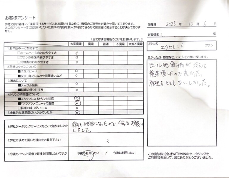 某株式会社様、この度はケータリングジャパンをご利用いただき、誠にありがとうございました。