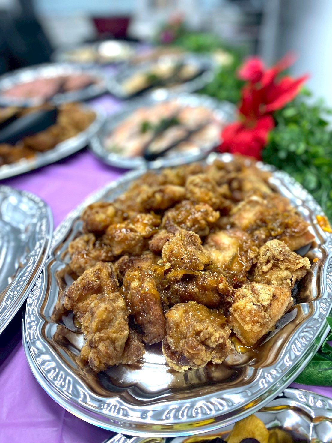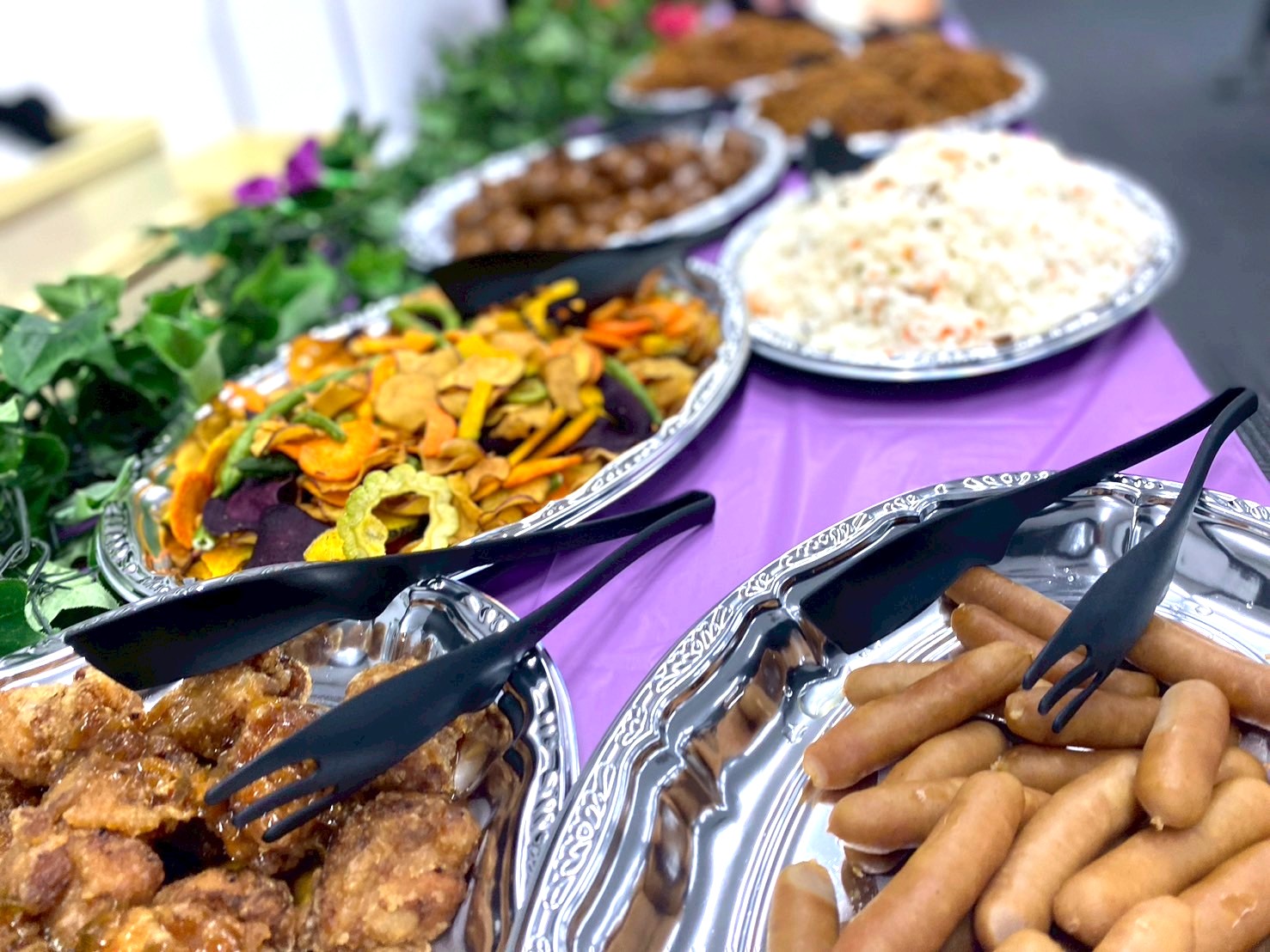 高低差をつけた銀皿の配置や、彩り豊かなデコレーションにより、お料理が並んだ瞬間、参加者の皆様からは喜びの声が上がりました。