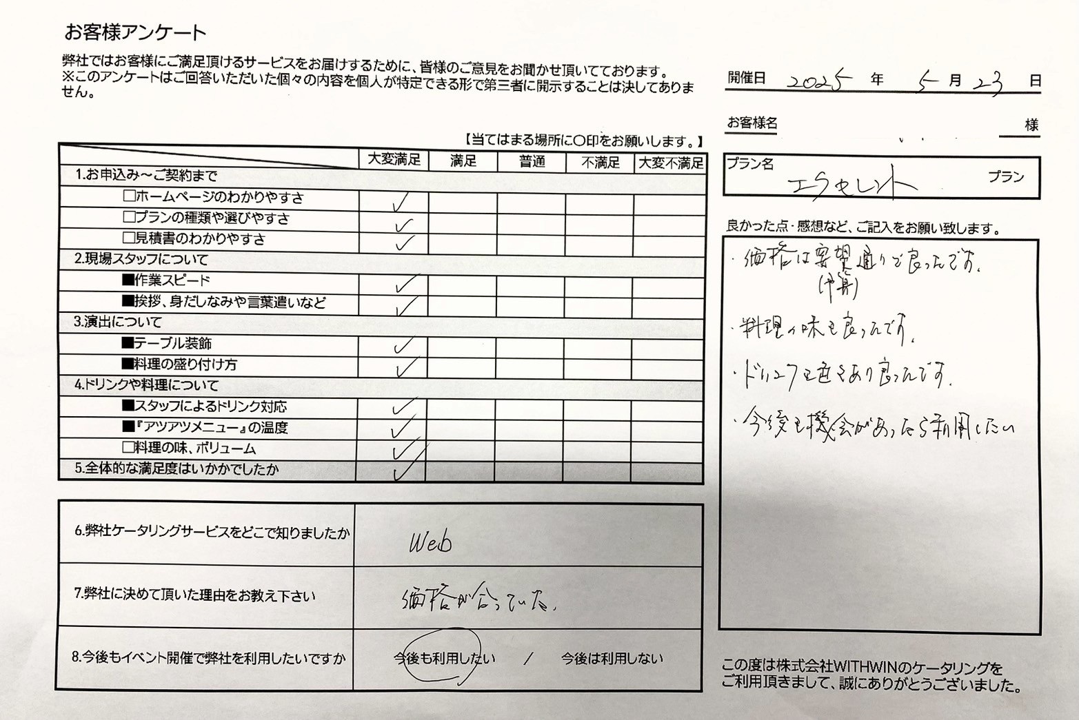 この度はご利用いただき、誠にありがとうございました。
