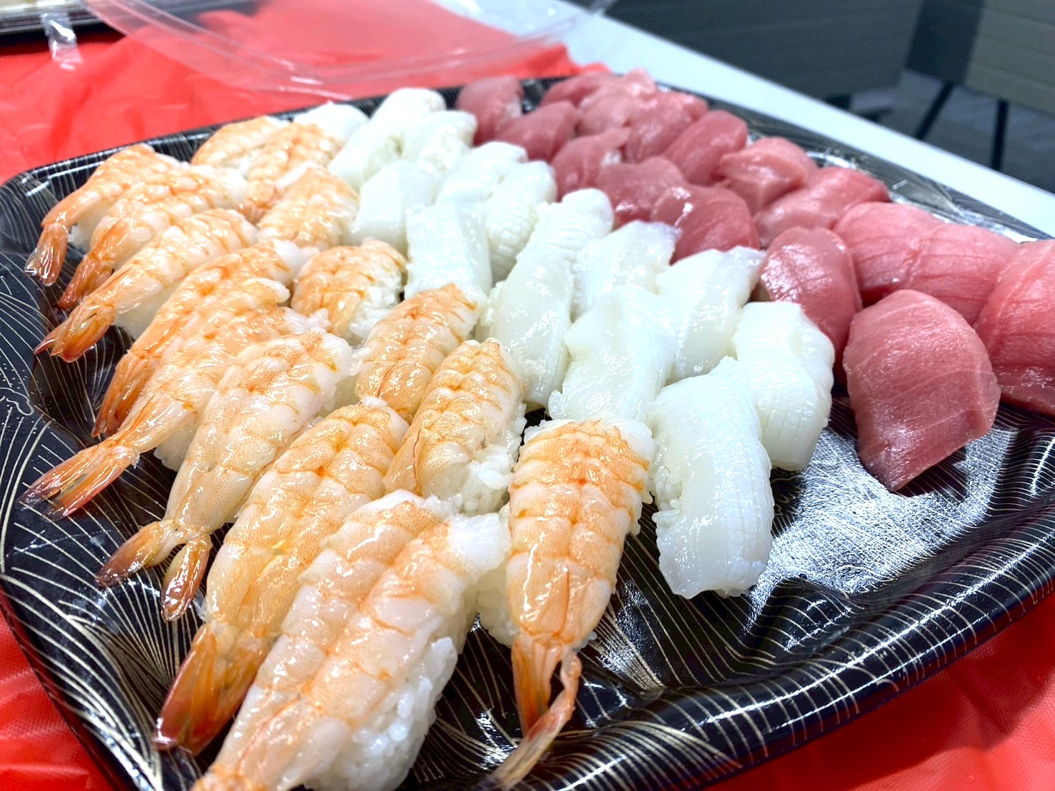 マグロ、イカ、エビなど、新鮮なネタがずらりと並ぶ様子は圧巻で、パーティーに欠かせない「おもてなし」の主役となりました。