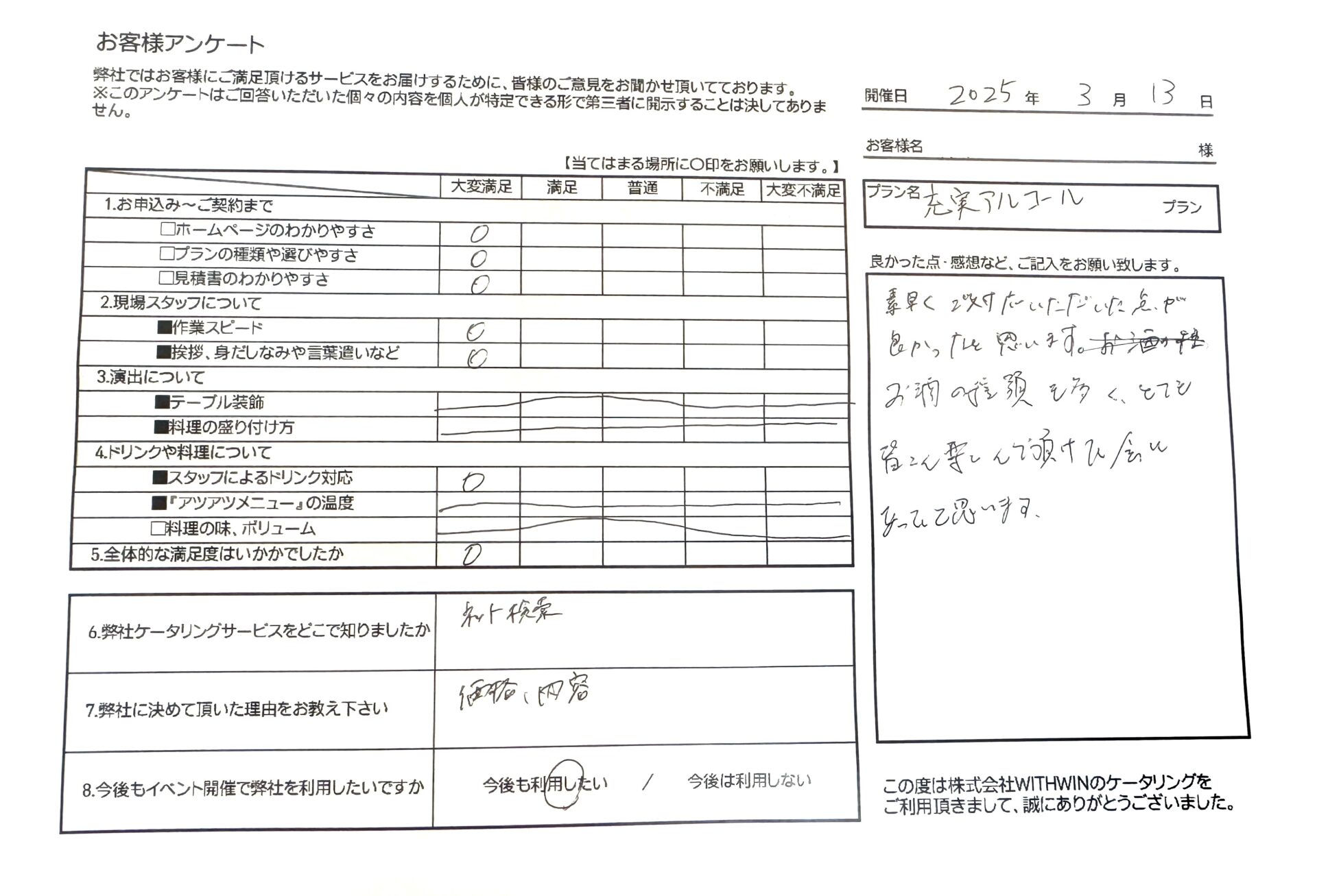 お酒の種類も多く、皆さん楽しんで頂けた会となったと思います。