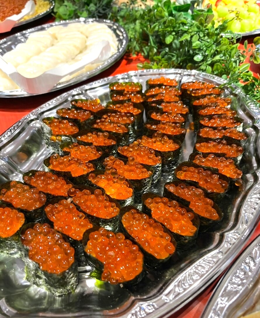 今回のパーティーでは、ワンランク上の華やかさを演出する「セレブリティープラン」に加え、「充実アルコールコース」、さらに「出張寿司職人」と「ローストビーフカッティングLIVE」という豪華コンテンツが揃った、まさに特別仕様のケータリングとなりました🎉✨