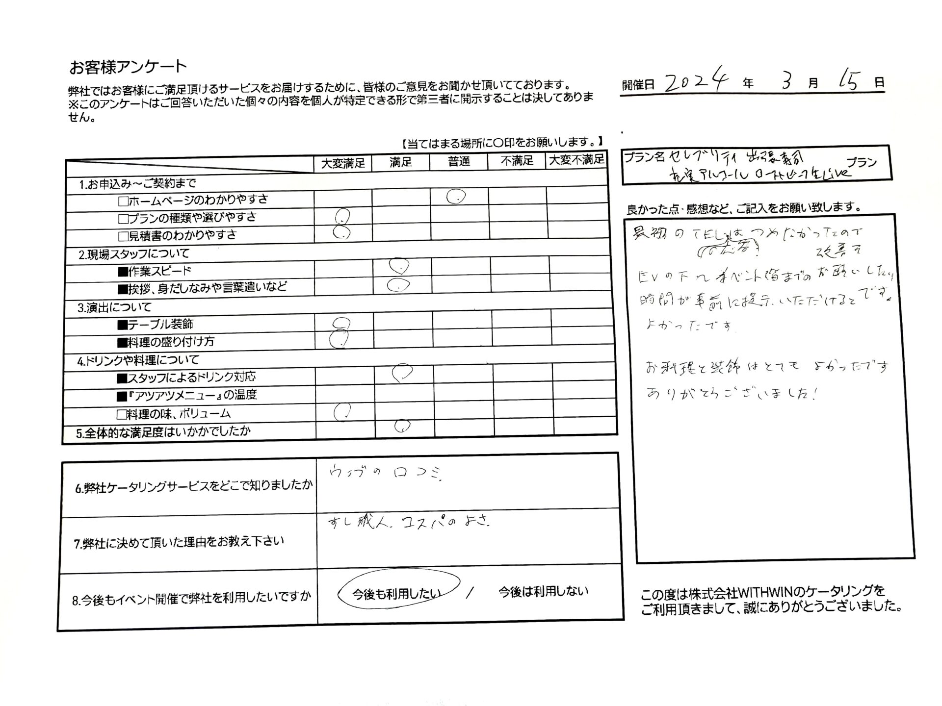 某株式会社様、この度は大切なパーティーにケータリングジャパンをご利用いただき、誠にありがとうございました🙇♂️