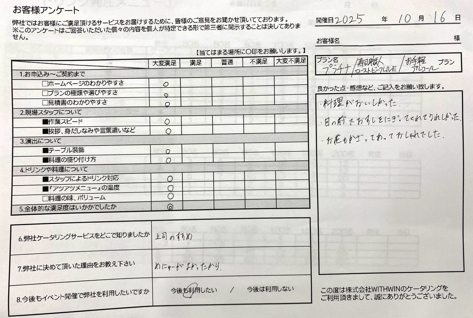 またのご利用を心よりお待ち申し上げております。