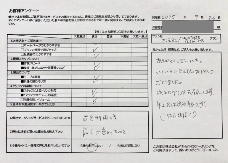 皆様の笑顔あふれる会にお役に立てたこと、大変光栄に存じます。