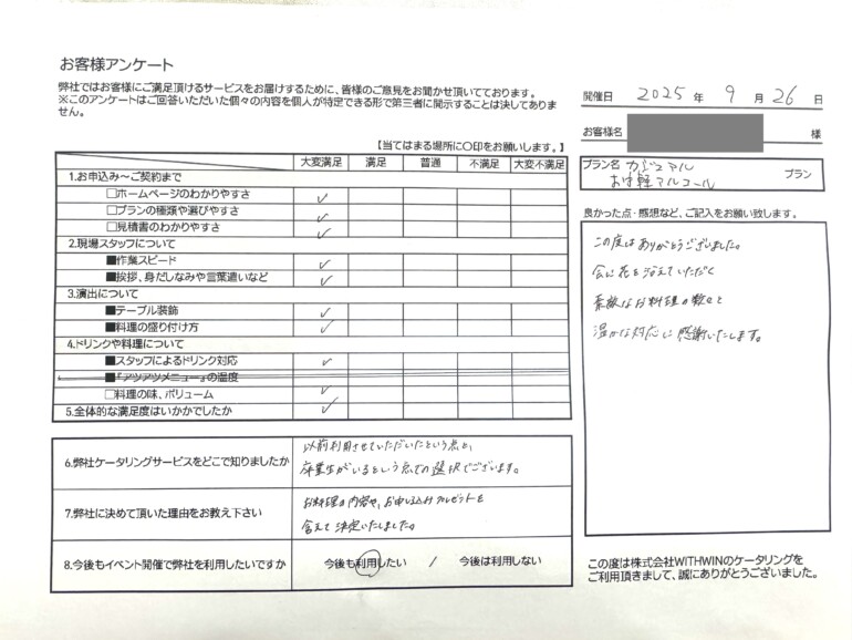 2時間の中で皆様にはお食事とドリンクをお楽しみいただきました!