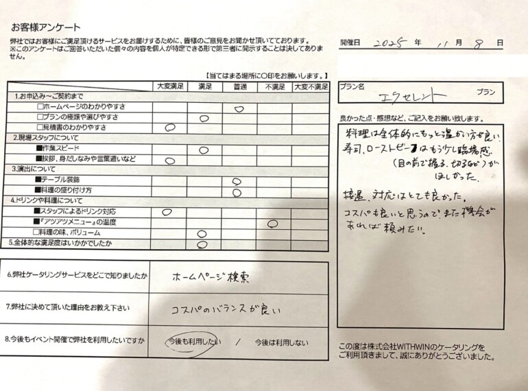 いただいたご意見をもとに従業員一同、さらに精進してまいります。