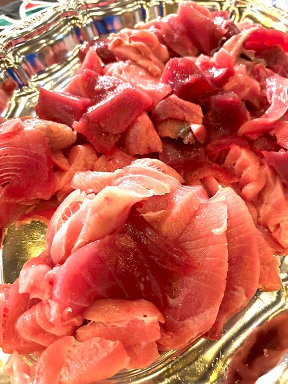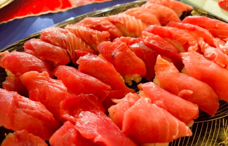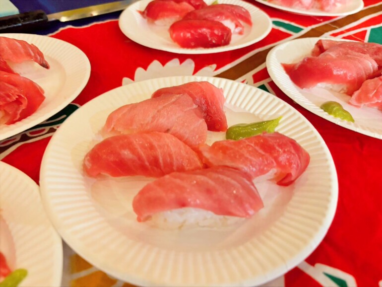 解体されたマグロはお刺身・お寿司としてご堪能いただけます。