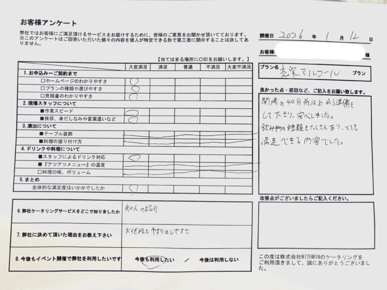 今回は88名様規模の同窓会でしたが、ドリンク提供もスムーズに進み、終始和やかな雰囲気に。