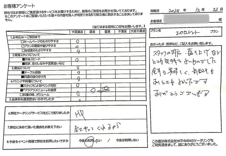 この度は、ケータリングジャパンをご利用いただき誠にありがとうございました。