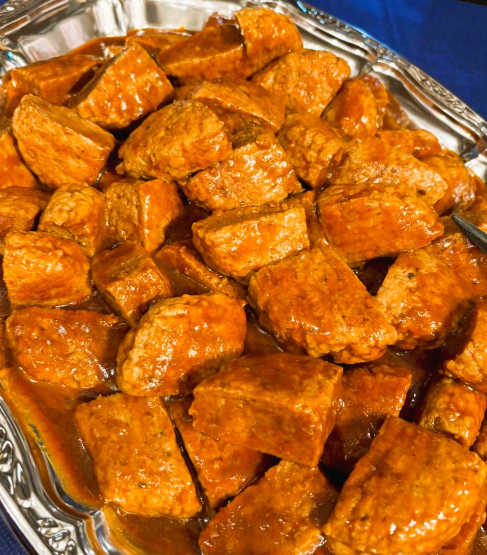 お写真にもあるように、見た目にも鮮やかなテリーヌの盛り合わせは、断面の美しさがゲストの目を引き、パーティーに洗練された彩りをプラスします。また、じっくりと煮込まれ旨味が凝縮されたミート料理は、男性ゲストも大満足のボリューム感。