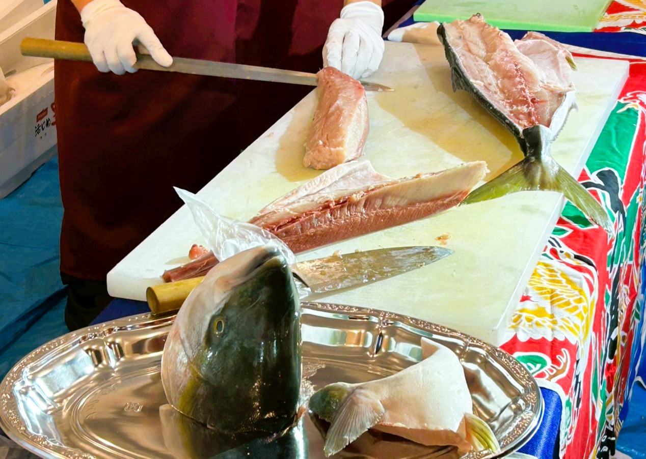 ■ 会場の視線を独占!迫力のブリ解体ショー