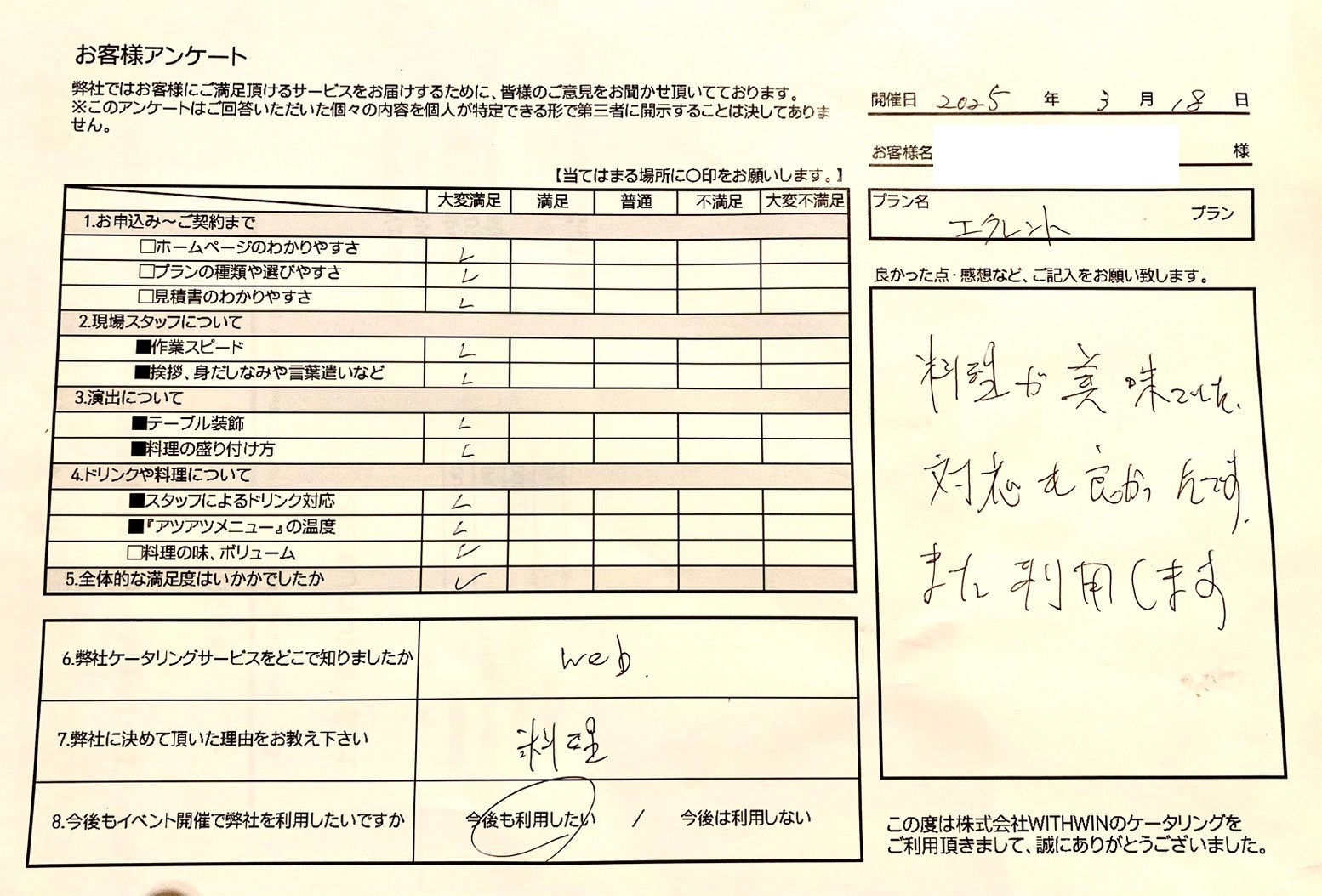 ✨某様この度はケータリングジャパンをご利用いただき、誠にありがとうございました。