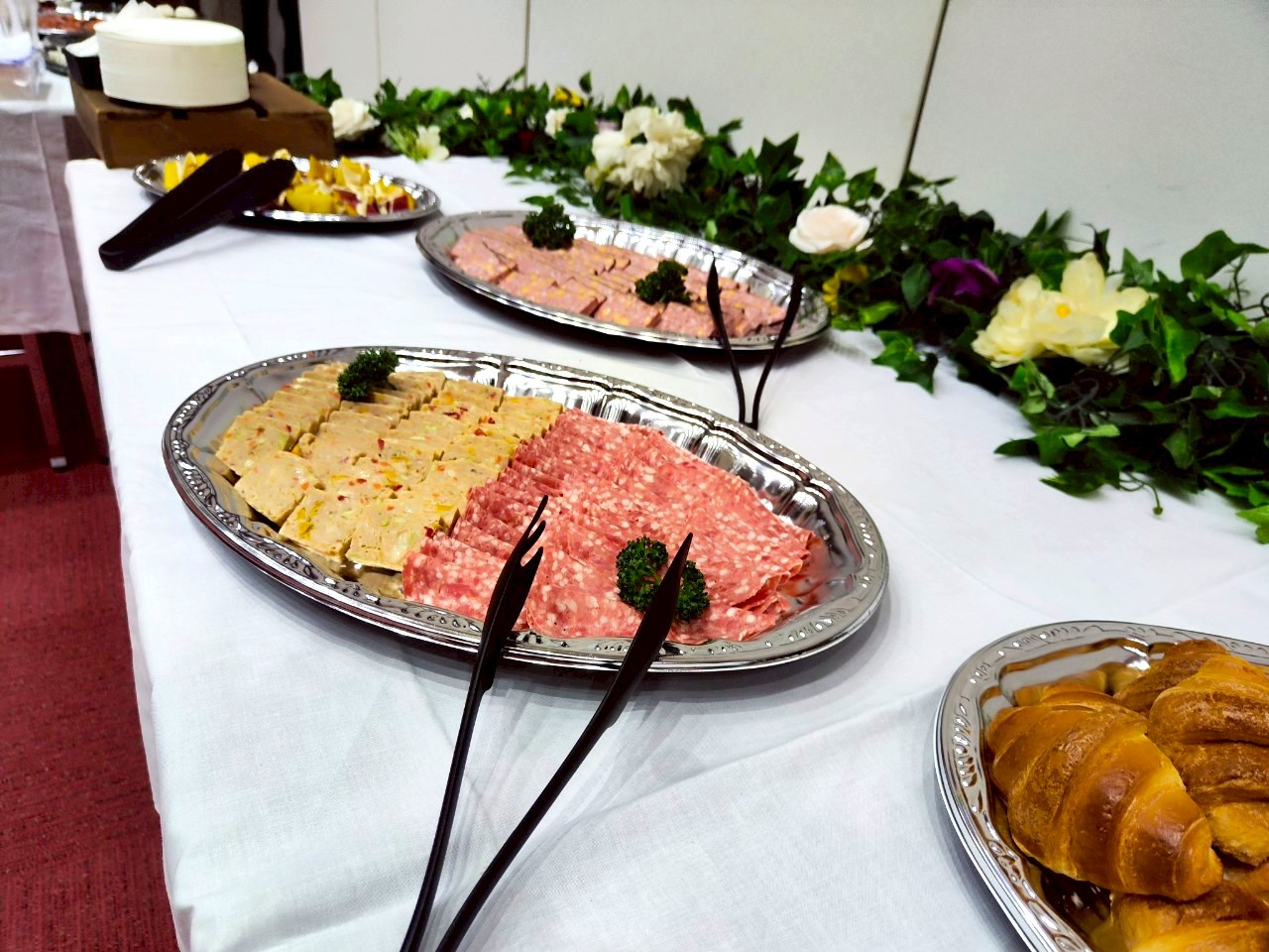 冷製オードブル: サラミやテリーヌ、彩り野菜のチップス、サクサクのクロワッサンなど、ワインやビールにぴったりのラインナップ。