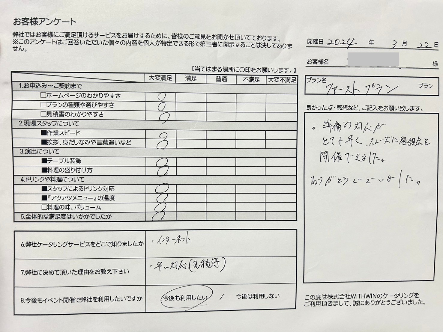 この度は、ケータリングジャパンをご利用いただき、誠にありがとうございました。