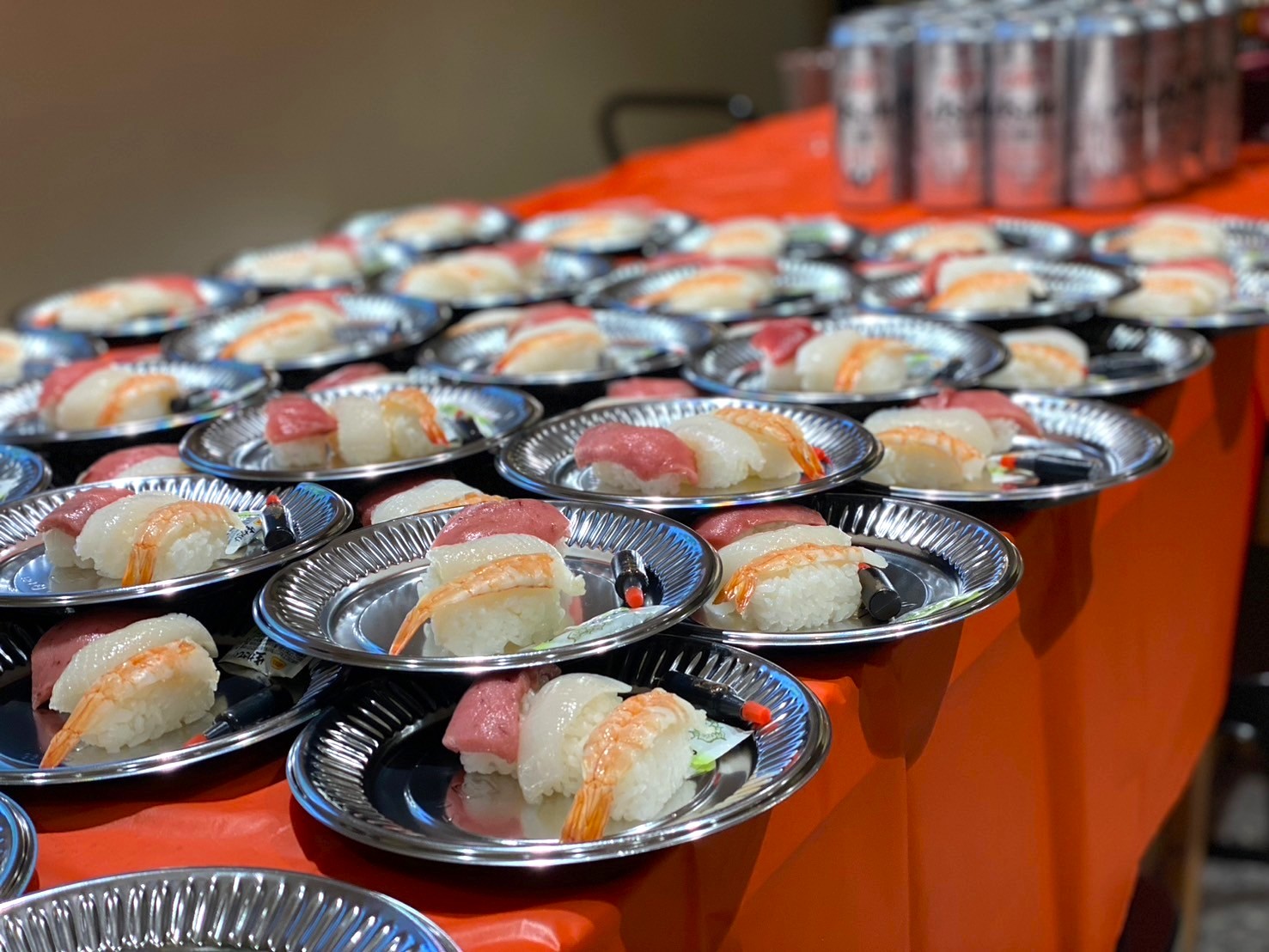 お料理はファーストプラン、寿司職人LIVE、ローストビーフカッティング、お飲み物はお手軽アルコールコースをご注文いただきました。