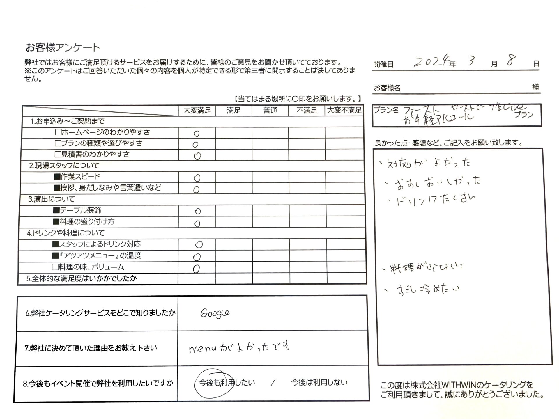 今後もご満足いただけるケータリングサービスを目指してまいります!