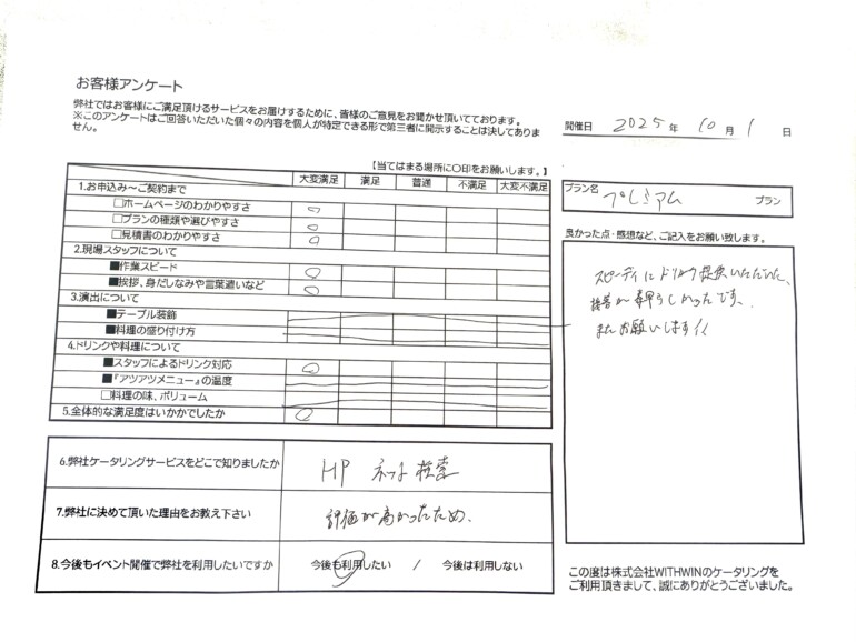 ドリンクは全て弊社スタッフがサーブいたしますので、