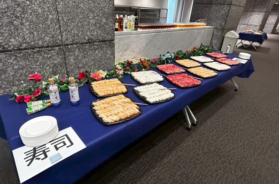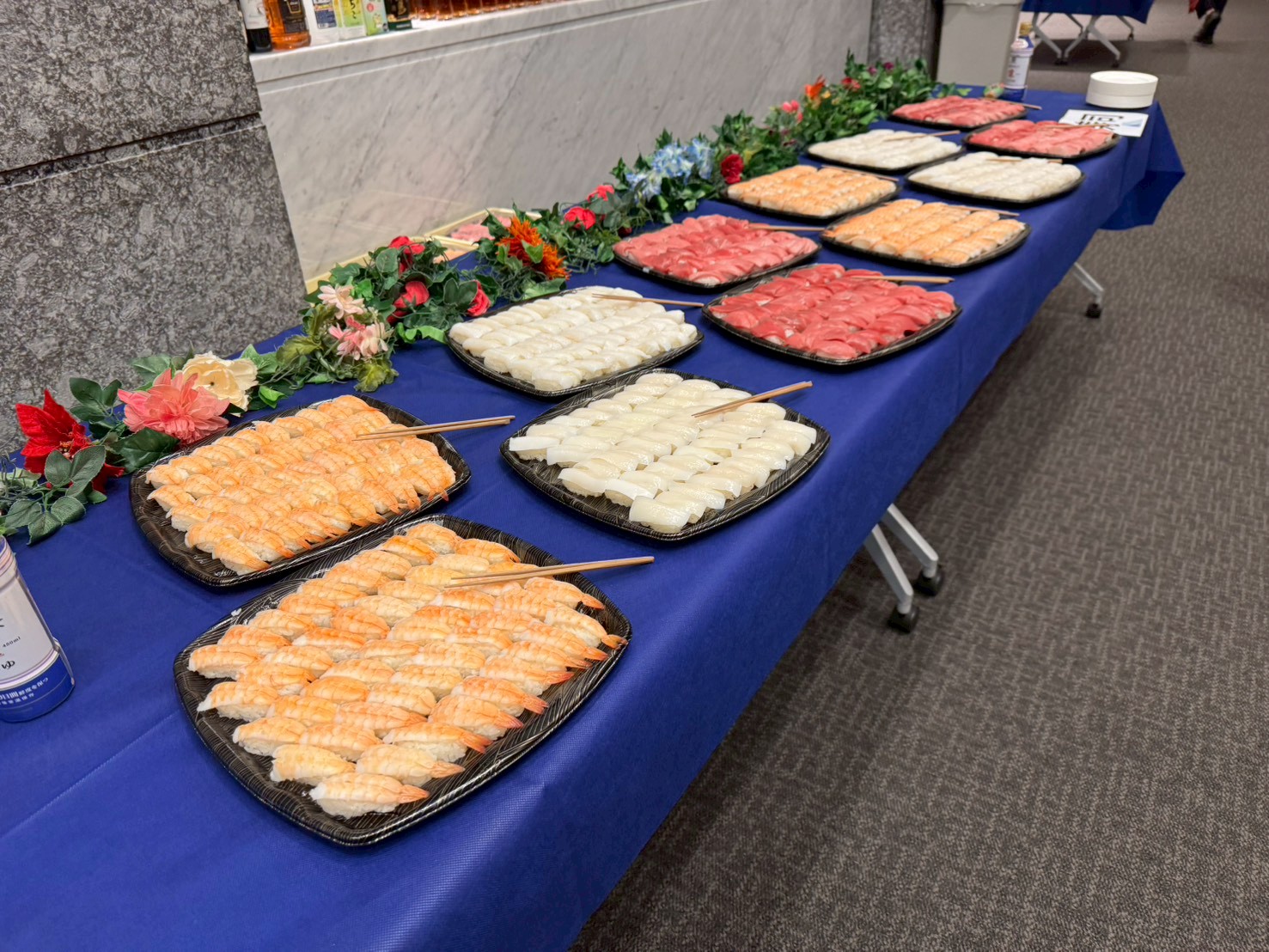 会場にはお寿司やローストビーフ🥩などのお料理が所狭しと並び、520名様ならではの迫力満点のケータリング空間となりました✨