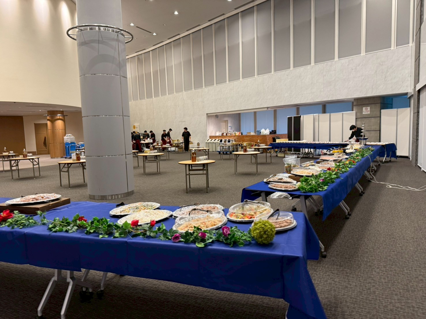 会場ではスタッフが丁寧に準備を進め、パーティーに向けてお料理の盛り付けを行いました✨