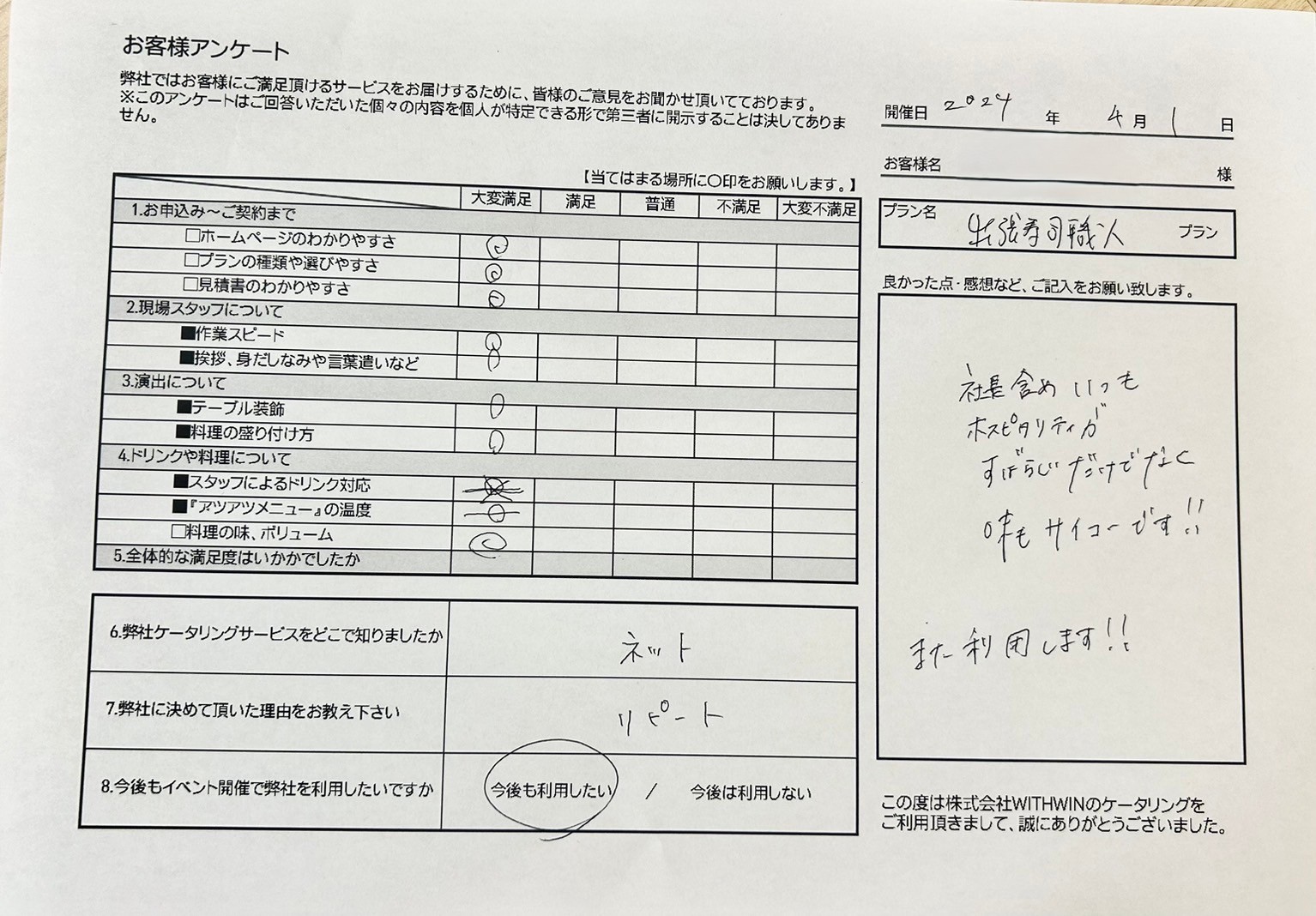 ✨この度はケータリングジャパンをご利用いただき、誠にありがとうございました。