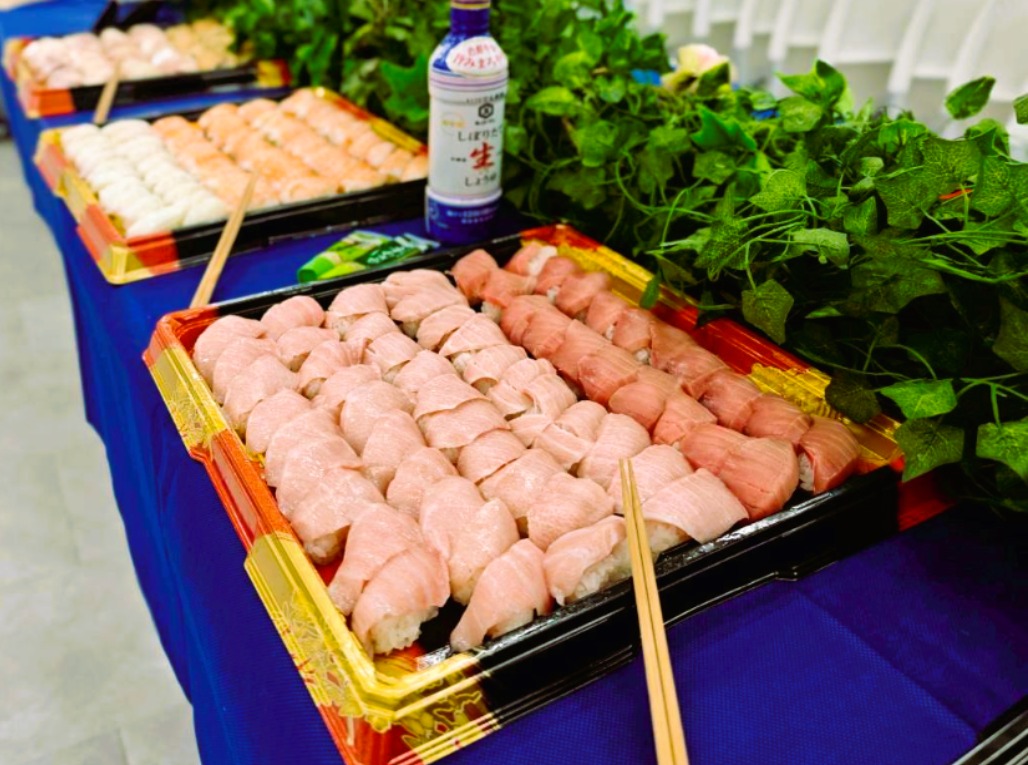 会場の一角には、新鮮なネタが並んだ寿司カウンターのような設えを施しました。