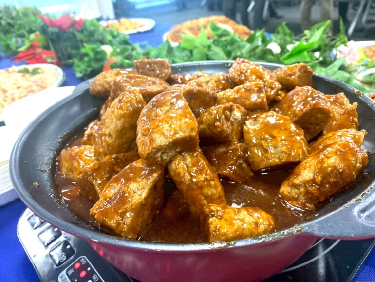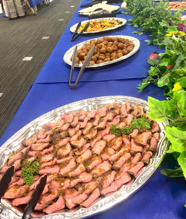 食べやすいサイズにカットし、立食パーティーでも取りやすい盛り付けで提供しました。