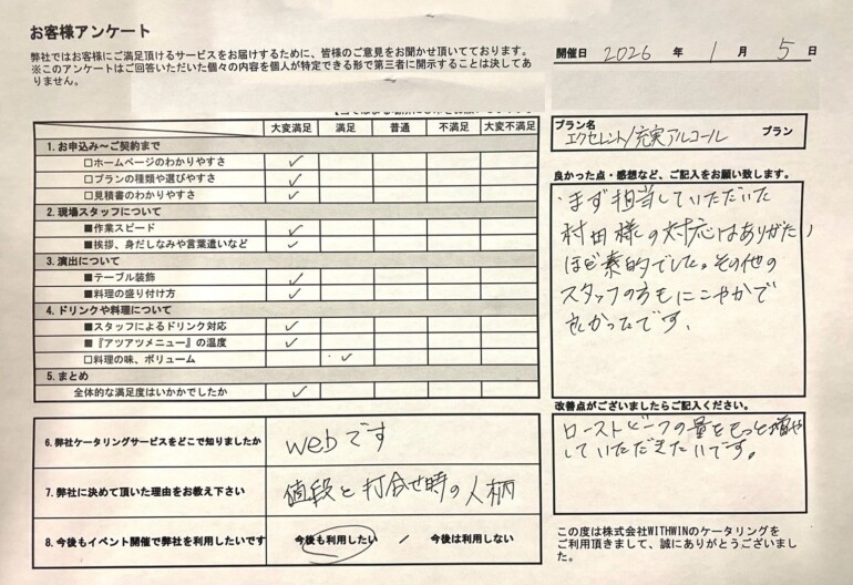この度は、ケータリングジャパンをご利用いただき、誠にありがとうございました。