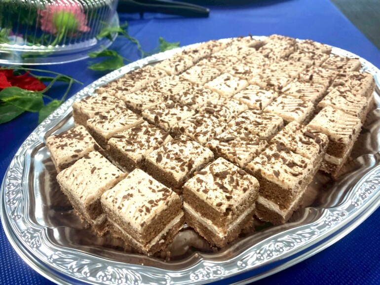 会の締めくくりには、しっとりとした生地にクリームを重ねたデザートをご用意。
