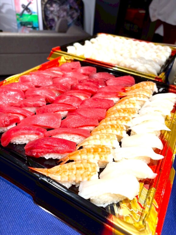 さらに今回は出張寿司職人も駆けつけました! マグロや海老など、鮮度抜群のネタを職人がその場で握ります。
