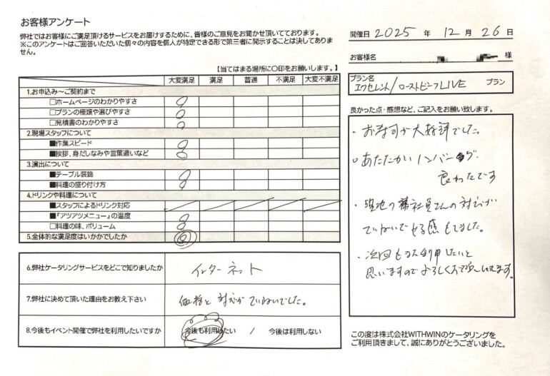 某様、この度は大切な会のお手伝いをさせていただき、誠にありがとうございました。