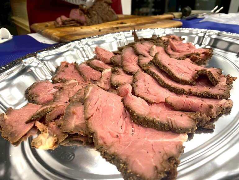 お寿司と並んで人気を博したのが、目の前で切り分けられるローストビーフです。