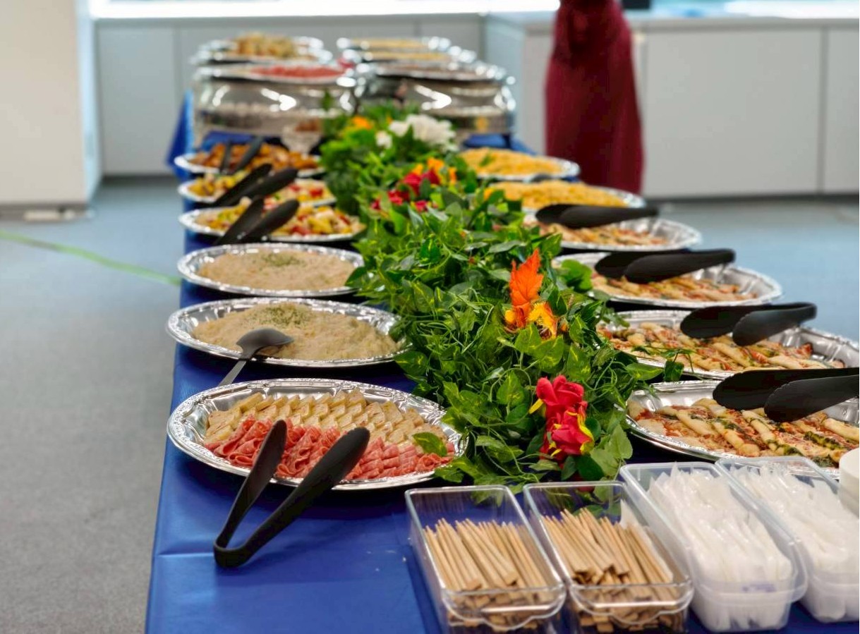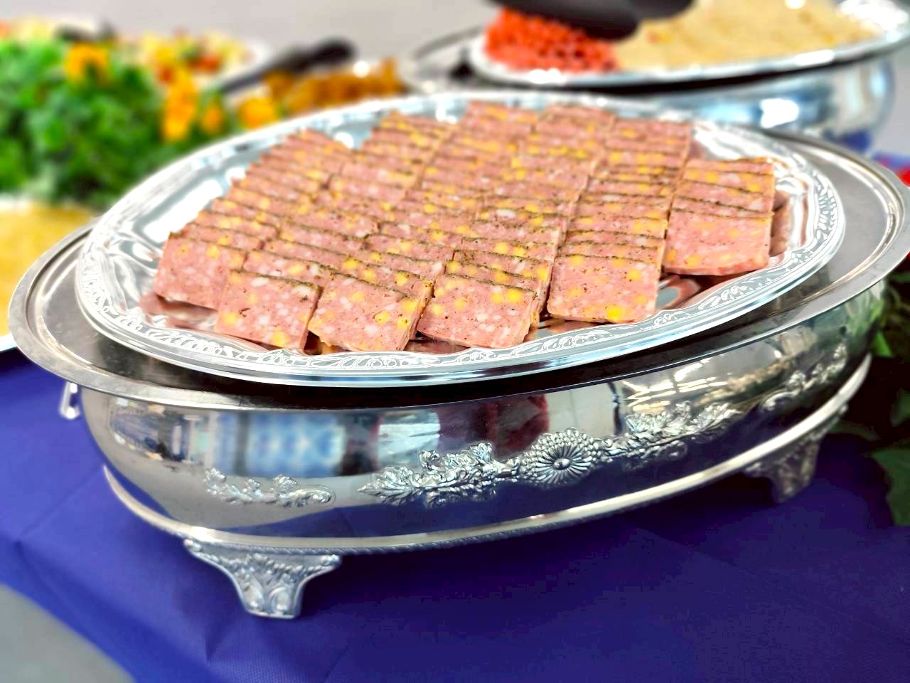 シルバーのチェーフィング(保温器具)や、彩り豊かなお料理が美しく並びました。