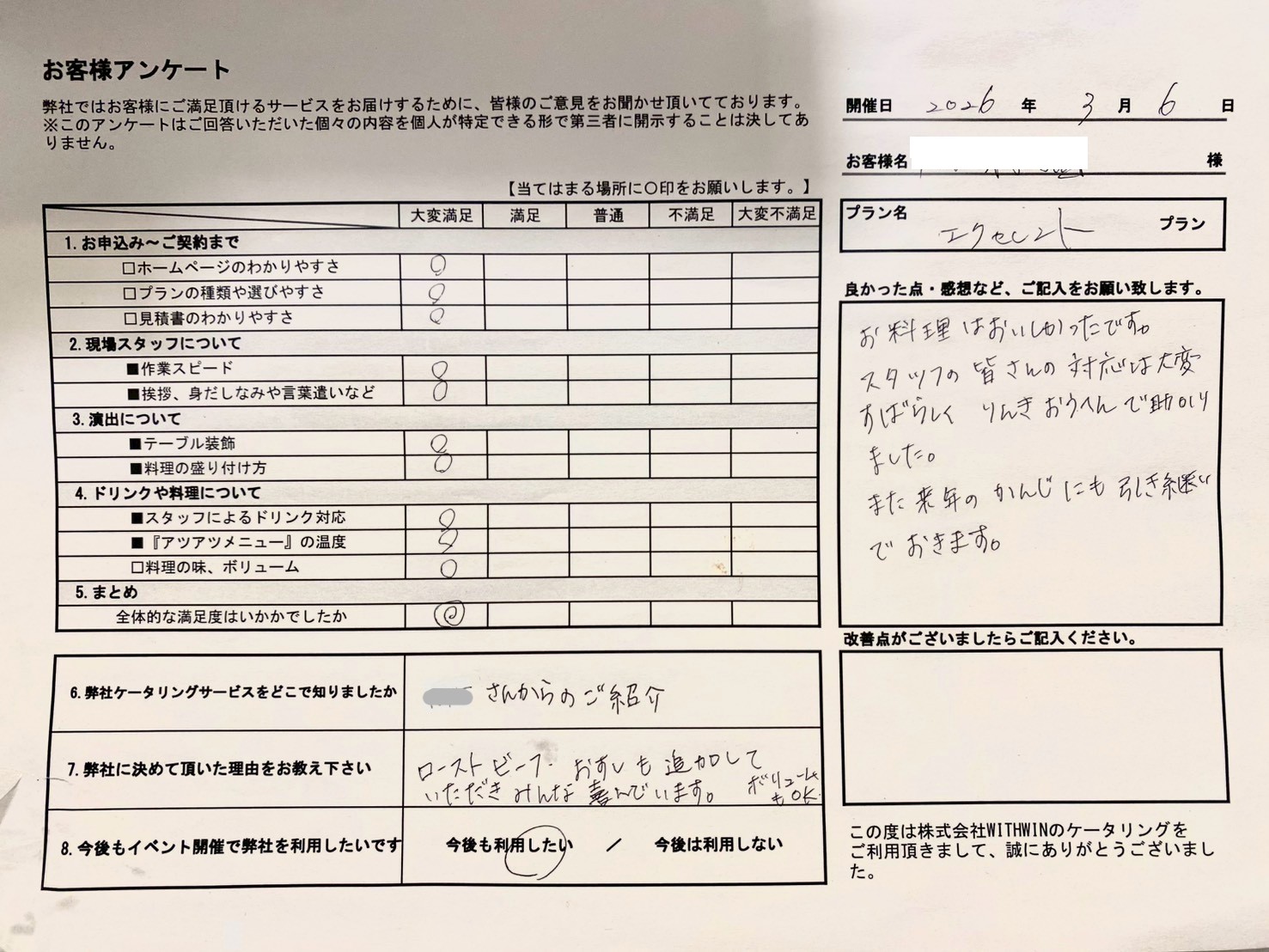 今後も皆さまにご満足いただけるケータリングサービスを目指してまいります。