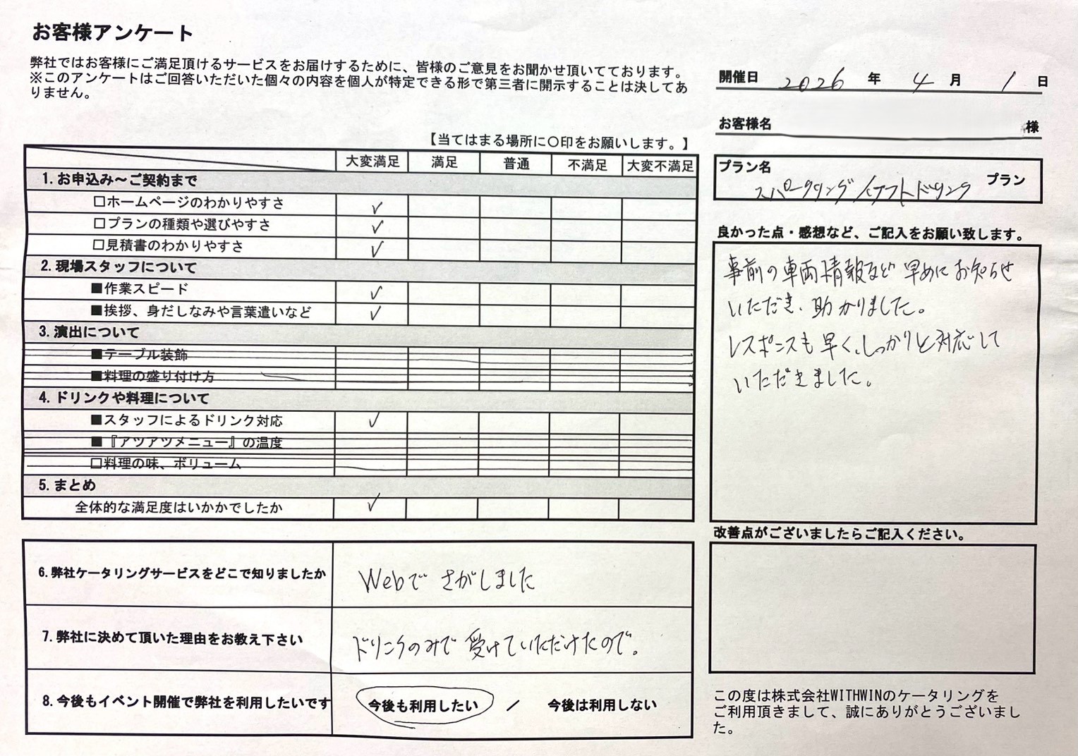 レスポンスも早く、しっかりと対応していただきました。
