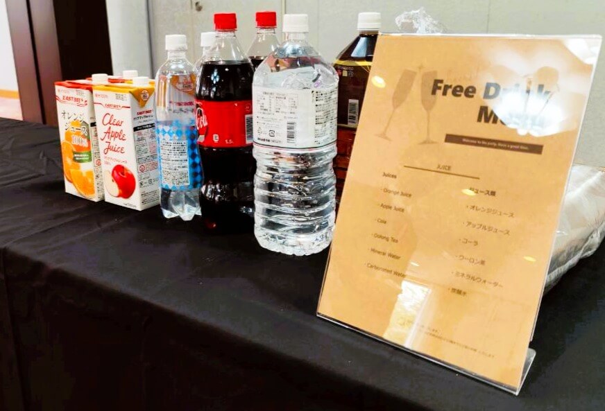 オレンジジュースやアップルジュース、コーラといったソフトドリンクから、ウーロン茶やミネラルウォーターまで幅広くご利用いただけるよう工夫しております。