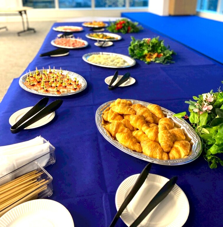 会場内には長テーブルを設置し、お料理を並べてご提供。