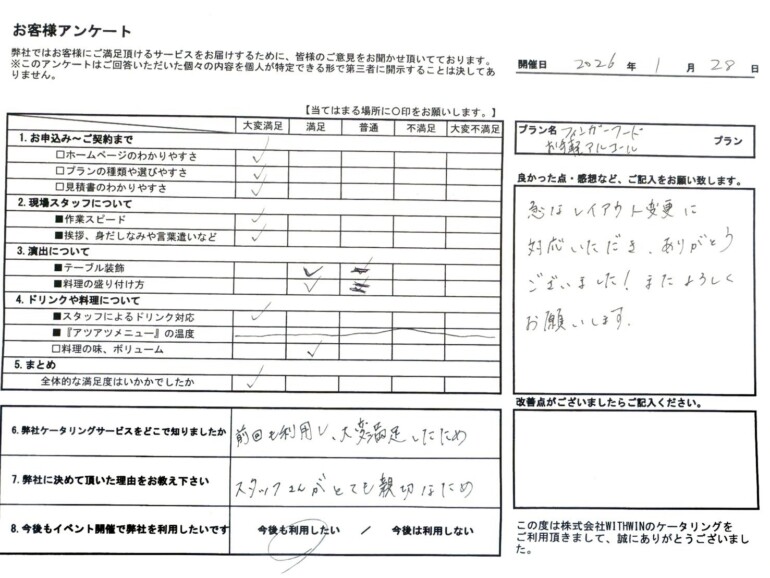 この度は、ケータリングジャパンをご利用いただき、誠にありがとうございました。