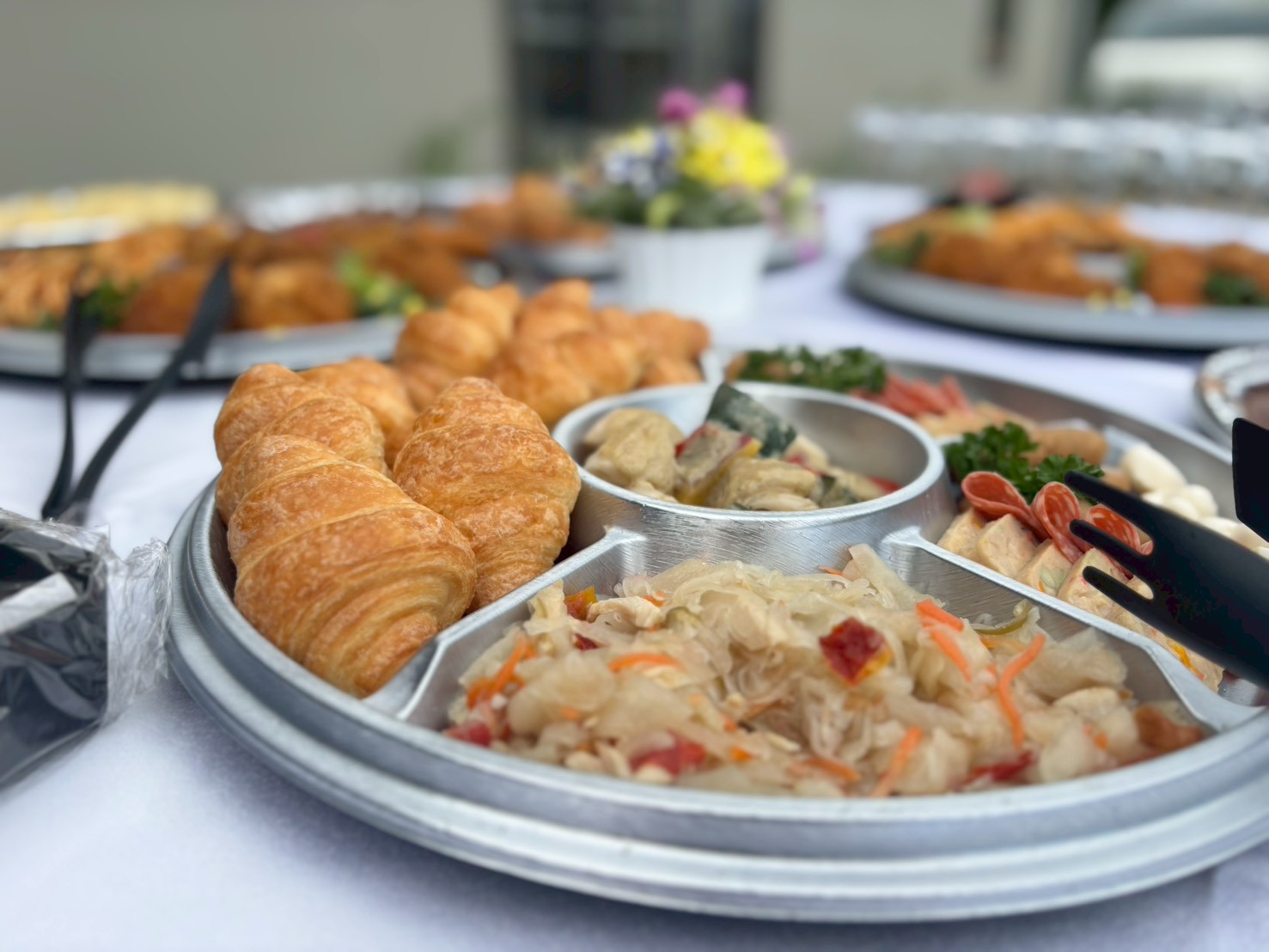 屋外でも取りやすいようオードブル容器に分けてご提供。