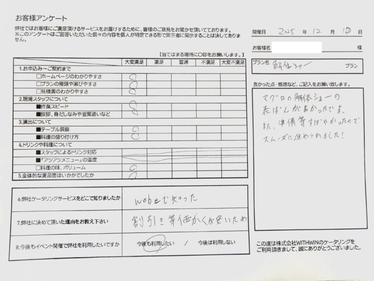 ケータリングジャパンをご利用いただき、誠にありがとうございました。