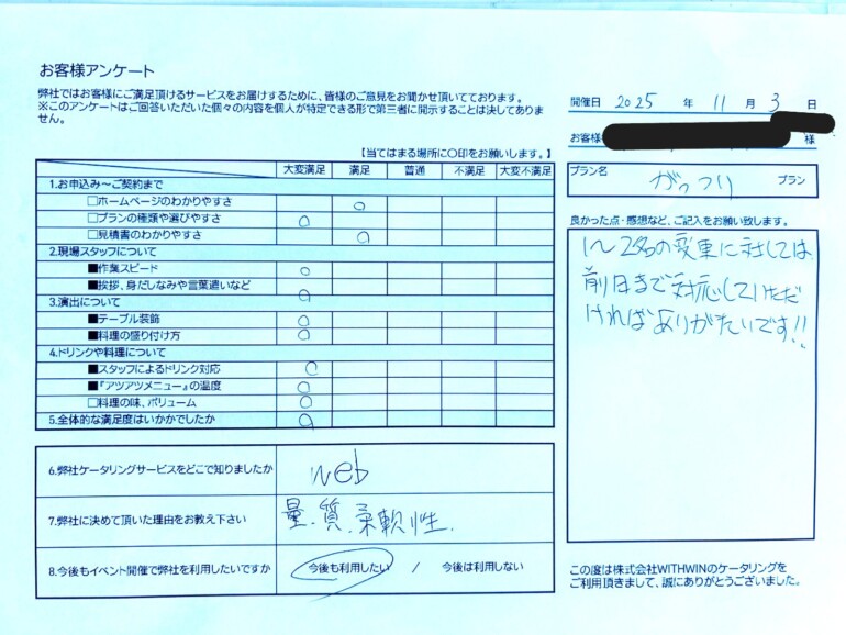 1~2名の変更に対しては前日まで対応していただければありがたいです!!