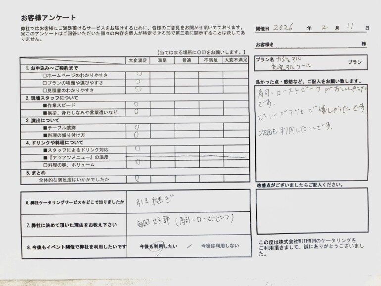 今回のパーティーも、お客様の笑顔に包まれながら無事に終了いたしました。